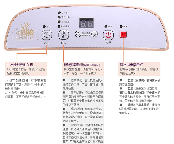 ◎控制系統(tǒng):動(dòng)態(tài)顯示,微電腦控制,多種除濕模式可選
